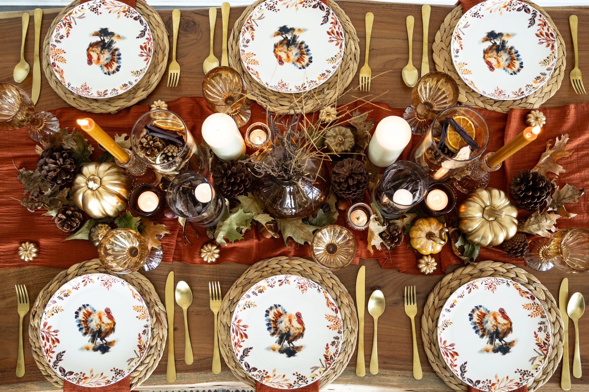 A cozy autumn bundle with earthy tones, wooden accents, and dried florals—perfect for warm, rustic Thanksgiving tablescapes.